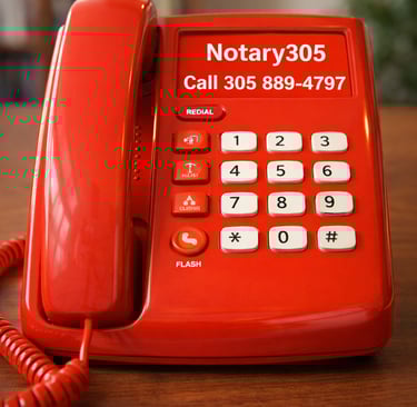 Serving Greater Miami 24/7 with prompt, professional notary services in English and Spanish. Call 305 889-4797 or text for a quick response.